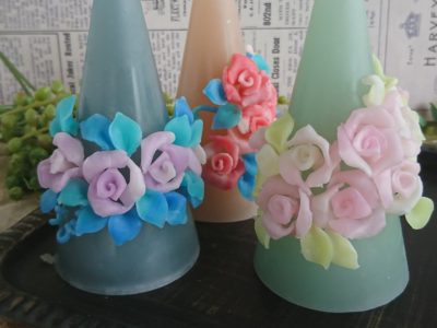 薔薇と葉、つぼみ、つた。 土台作りからグラデーションのシート作り、パーツ作りと少し時間がかかるキャンドルですが、 その分完成したときの満足度も満点です!