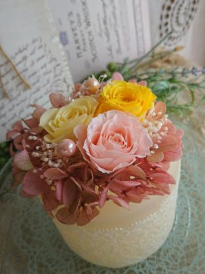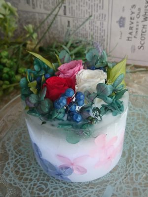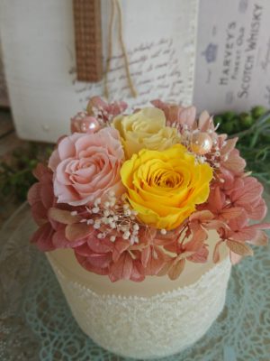 プリザーブドフラワーアレンジとワックスのコラボ
