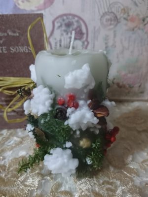 蝋で雪を表現するこちらも人気のキャンドル。