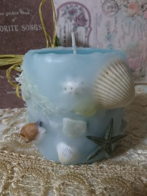 海の季節は過ぎましたが、こちらは貝やひとでで夏のキャンドル。