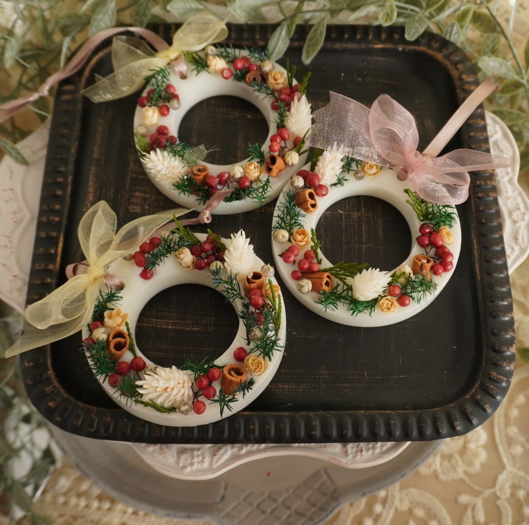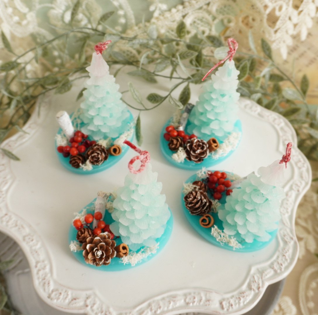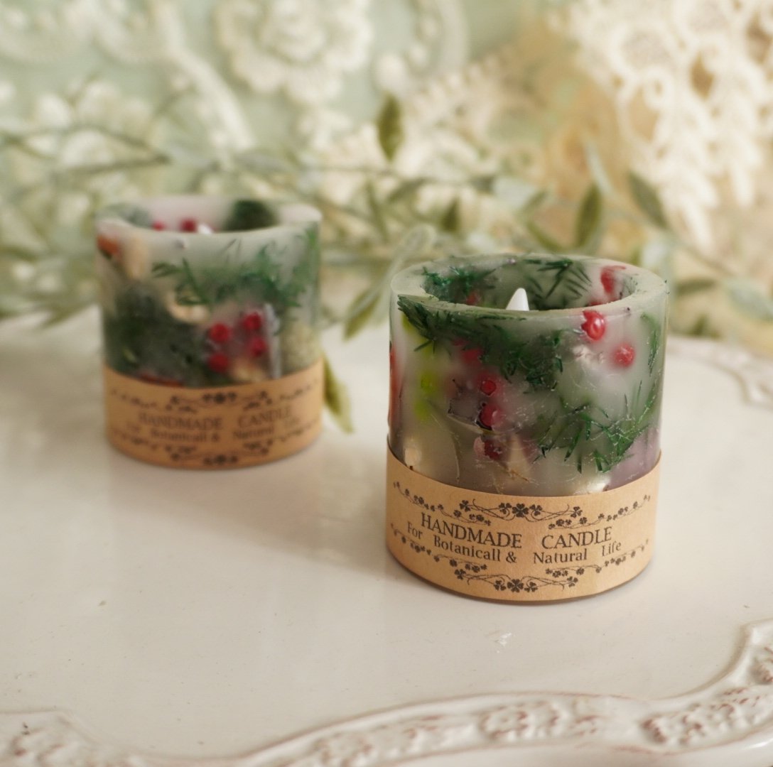 クリスマスツリーのキャンドルやボタニカルランタン、リース型のアロマワックスサシェなど、冬のインテリアやプレゼントに最適なアイテムを出品させて頂いています。