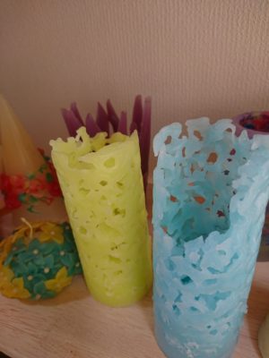ロックキャンドル、ロックレースキャンドルなどと呼ばれている、繊細で灯すと美しいキャンドル。