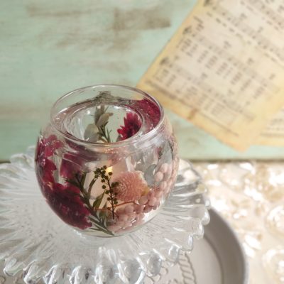 趣味の1dayレッスンでは、お花を沢山使って、気軽にキャンドル作りを楽しんでいただける簡単な作品をご用意しています。