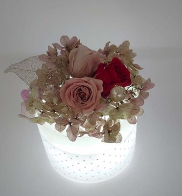 灯りがともるアレンジとしてギフトにも最適な作品です。